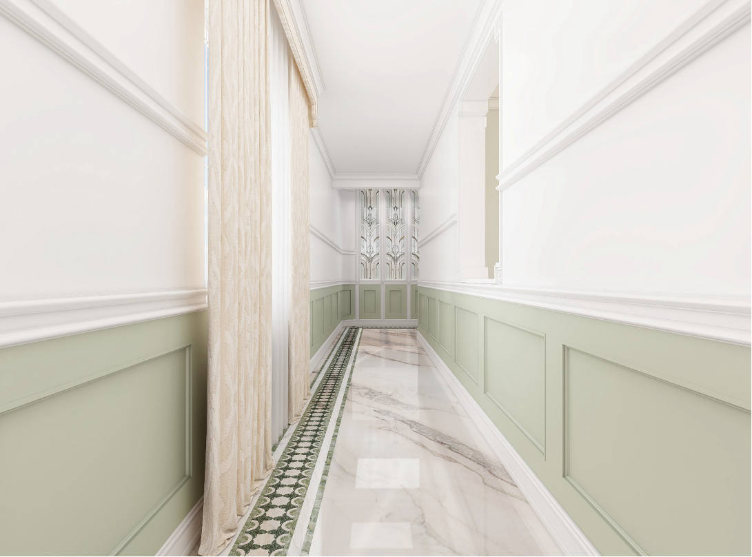 في هذا الطابق تتناغم الخطوط الكلاسيكية مع اللمسات العصرية في لوحة معمارية متقنة، حيث يلتقي عبق الأصالة برقي الحداثة ليمنح المكان طابعاً فريداً يفيض بالفخامة. لم يكن المزج مجرد جمع بين أسلوبين، بل رؤية مدروسة تهدف إلى ابتكار بيئة سكنية أكثر مرونة، تُشعر قاطنيها بالراحة والسكينة، وتمنحهم تجربة معيشية تُجسّد المعنى الحقيقي للأناقة المستدامة.