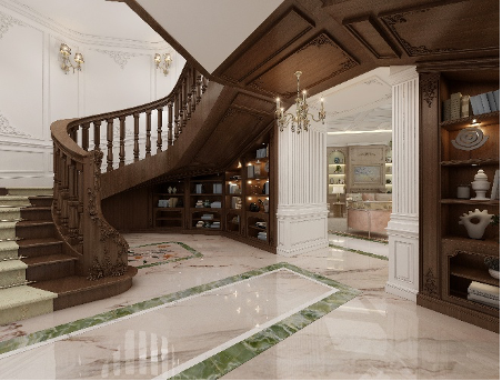 تم تنفيذ هذه الفيلا السكنية الخاصة، على مساحة تتجاوز ٢,١٠٠ م² بأسلوب كلاسيكي متكامل يعكس تفرّد الذوق وعمق الفخامة. تولّى فريق لكجري كود مسؤولية التصميم والتنفيذ، انطلاقًا من فلسفة تصميم تُراعي التكامل بين الجماليات الكلاسيكية والوظيفة اليومية، لتنتج تجربة سكنية تنبض بالتفاصيل المدروسة والدفء المعماري.